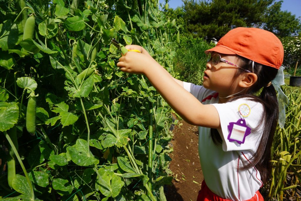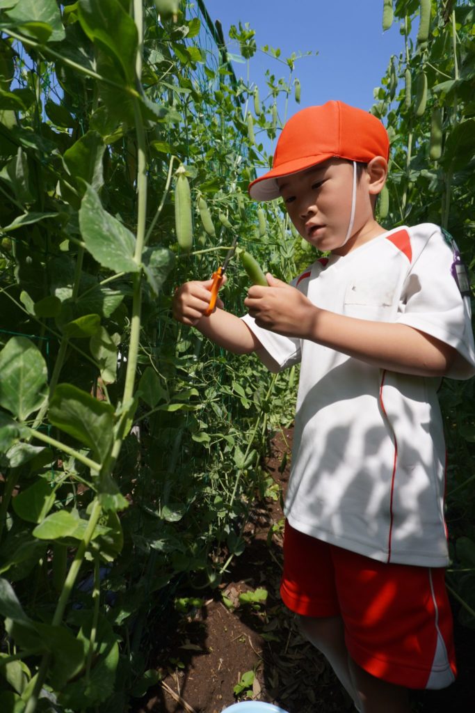 グリンピースの収穫(年長)