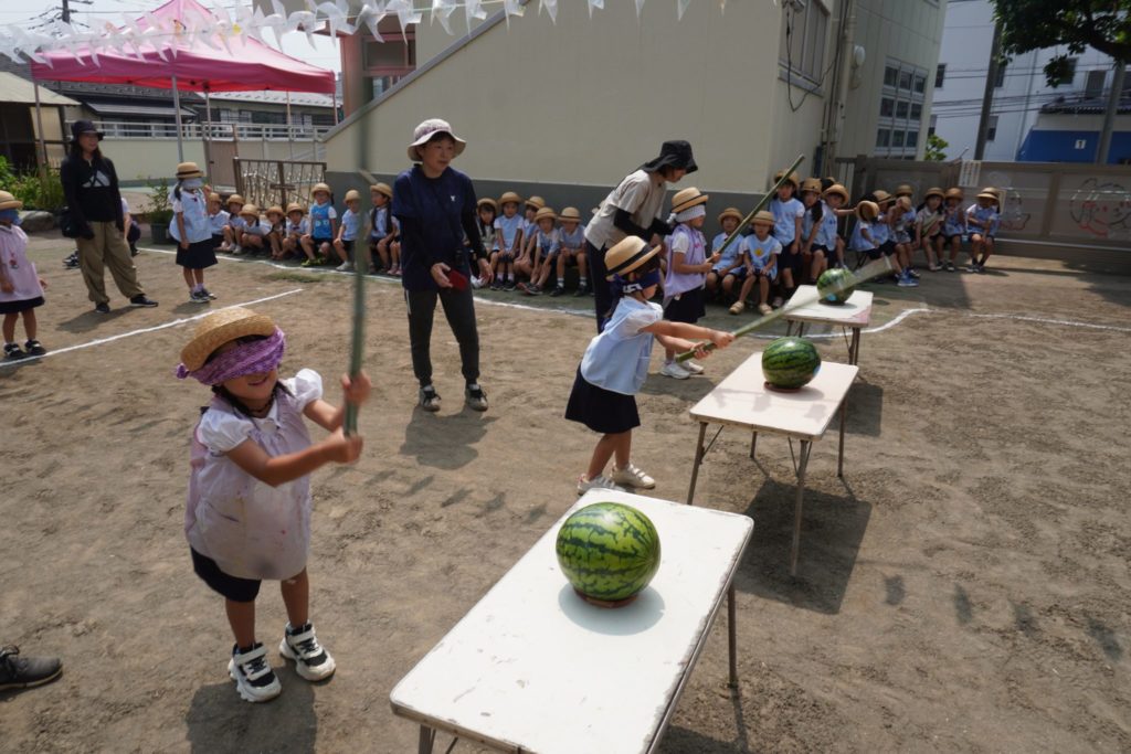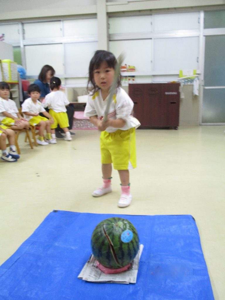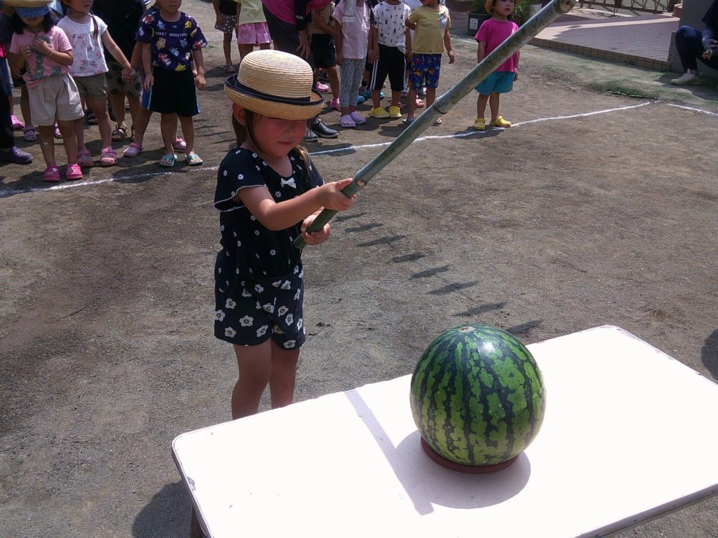 2025.07.08 2025.07.09 ブログ秋葉幼稚園 スイカわり 学年ごと、年齢に合った形で スイカわりをしました。みんなで食べたスイカ、とっても甘くておいしかったね。 Digital Camera Digital Camera