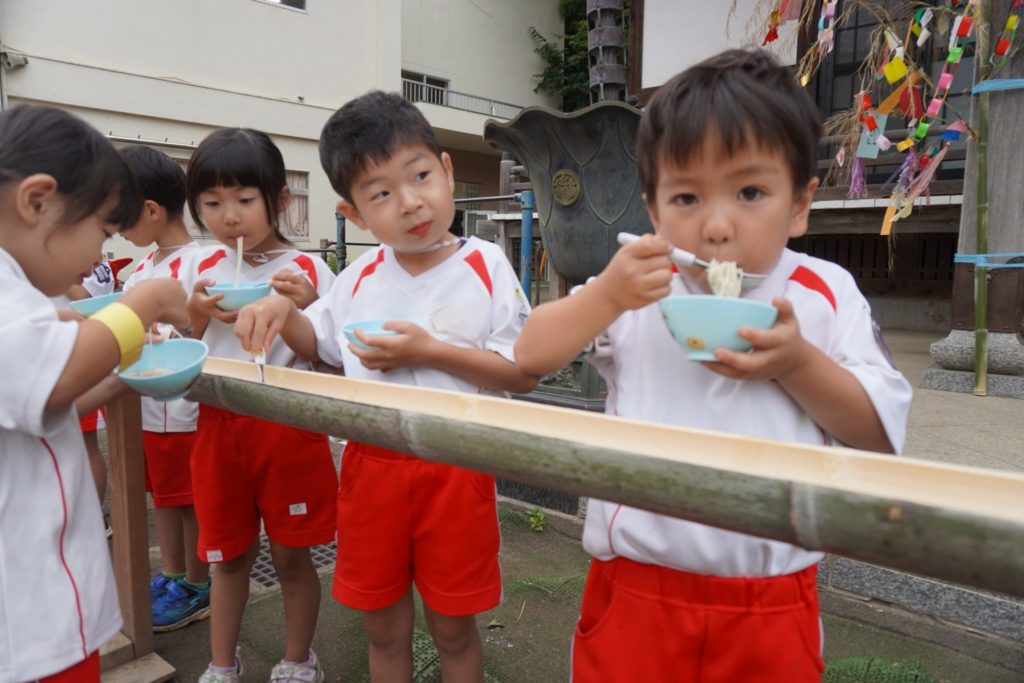 2025.07.11 2025.07.14 ブログ秋葉幼稚園 夜のお楽しみ会 過ごしやすい天気の中、夜のお楽しみ会が始まりました。園長忍者のゲームを通してチームの団結力が一気に高まった気がします。流しそうめんを食べるみんながとても嬉しそうで先生達も嬉しくなりました。