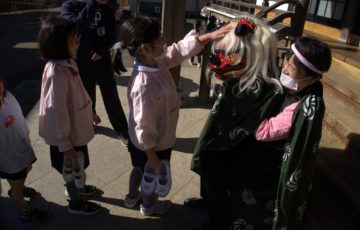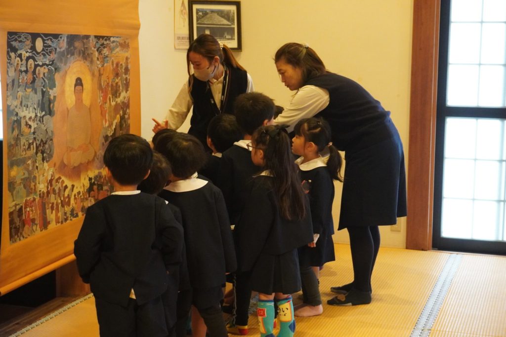 ありがとうの気持ちを大切にしましょうね、の気持ちを込めて園長先生が本堂でお経をあげてくれました。