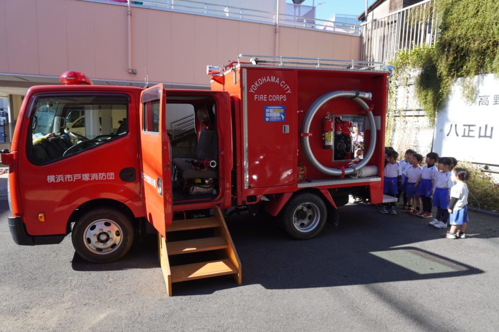 消防車に乗ったり、ホースを実際に触ってみたり、色々な体験が出来ました。
