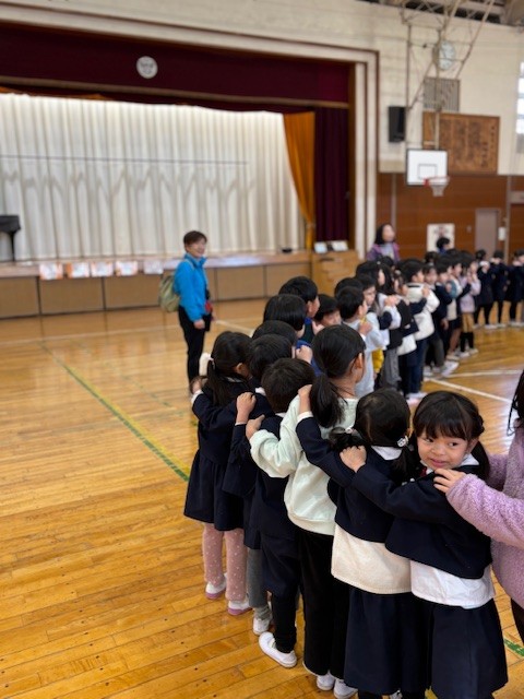 秋葉小学校の交流会では1年生のお兄さんお姉さんが一緒に遊んでくれました。