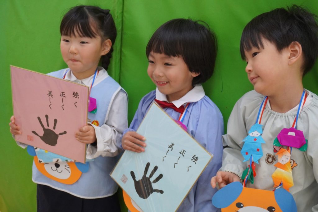 幼稚園のお誕生会。学年ごとに少しずつ違います。合同でホールでお祝いしたり、マイクで質問してもらったり、粘土のケーキを作ったり。